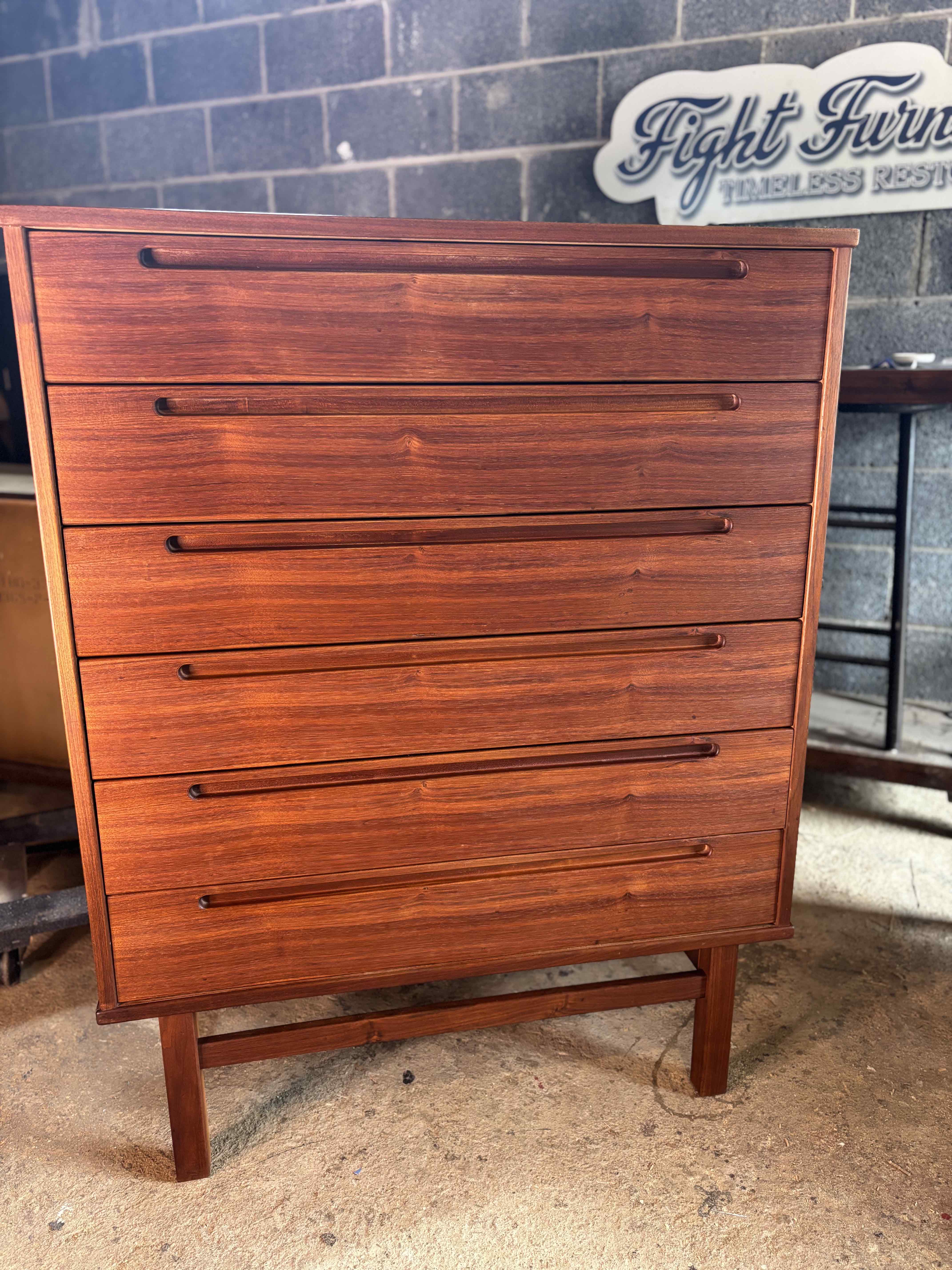 A set of Nils Jonsson for Touring Molfabrik dressers appeared in my shop, on commission. Not needing significant repair. Only needing rejuvenation. Sure, there were scratches, a few dings, some water marks, a corner of chipped veneer. But the teakwod was unblemished. And as I professionally refinished the two dressers, I tried my best to keep the teak unblemished.